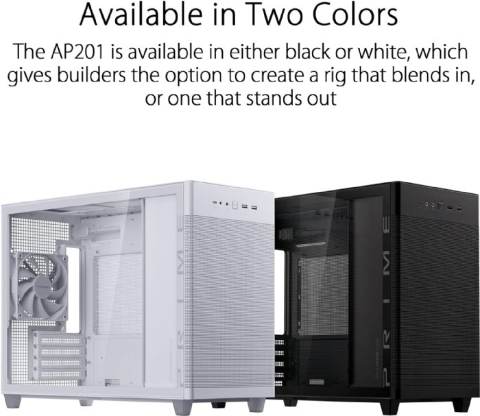 ASUS Prime AP201 Black Micro ATX PC Case Tempered Glass Edition, Supports Graphics Cards up to 338mm, 360mm Coolers, and ATX PSUs, Tool-Free Side Panels, Tempered Glass Side & Front Panel USB Type-C