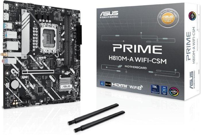 ASUS Prime H810M-A WiFi-CSM Intel H810 LGA 1851 mATX Motherboard, 6+1+1+1 Discrete MOS, DDR5, PCIe 4.0, 2X M.2, Intel 1Gb Ethernet, Wi-Fi 6, DisplayPort, HDMI, USB 10Gbps, Front USB 5Gbps Type-C