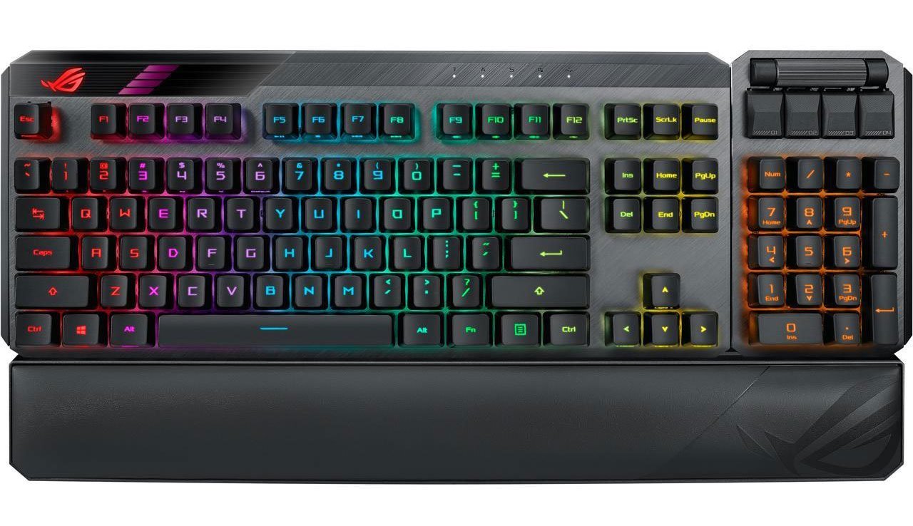 ASUS ROG Claymore II 100% / 80% TKL Wireless RGB Modular Gaming Keyboard, ROG RX Red Switches, PBT Doubleshot Keycaps, Detachable Numpad, Wrist Rest, Media Controls, USB Passthrough - Black PBT