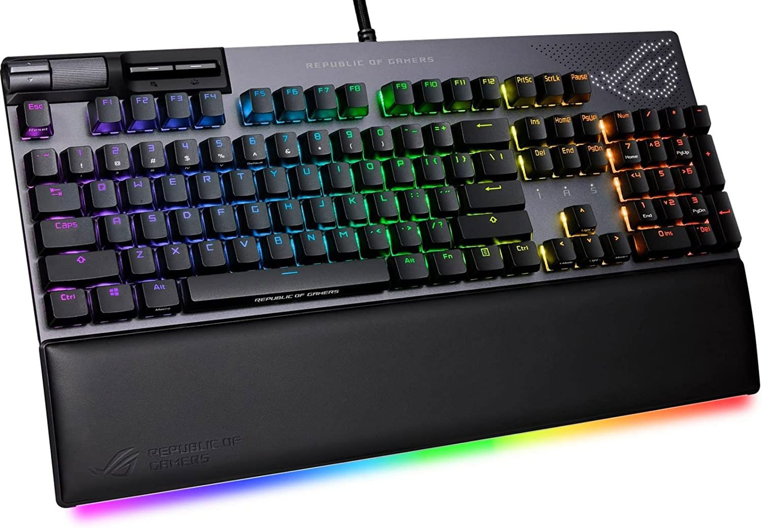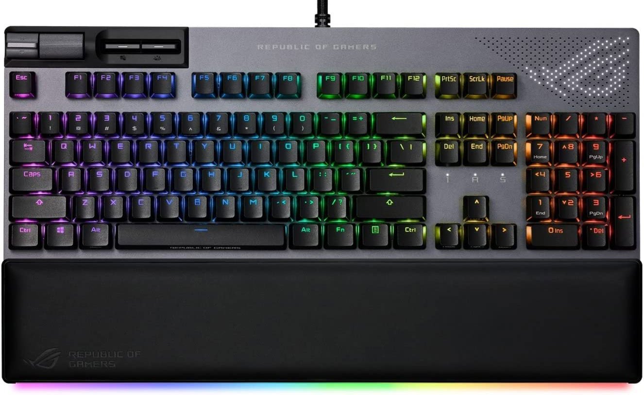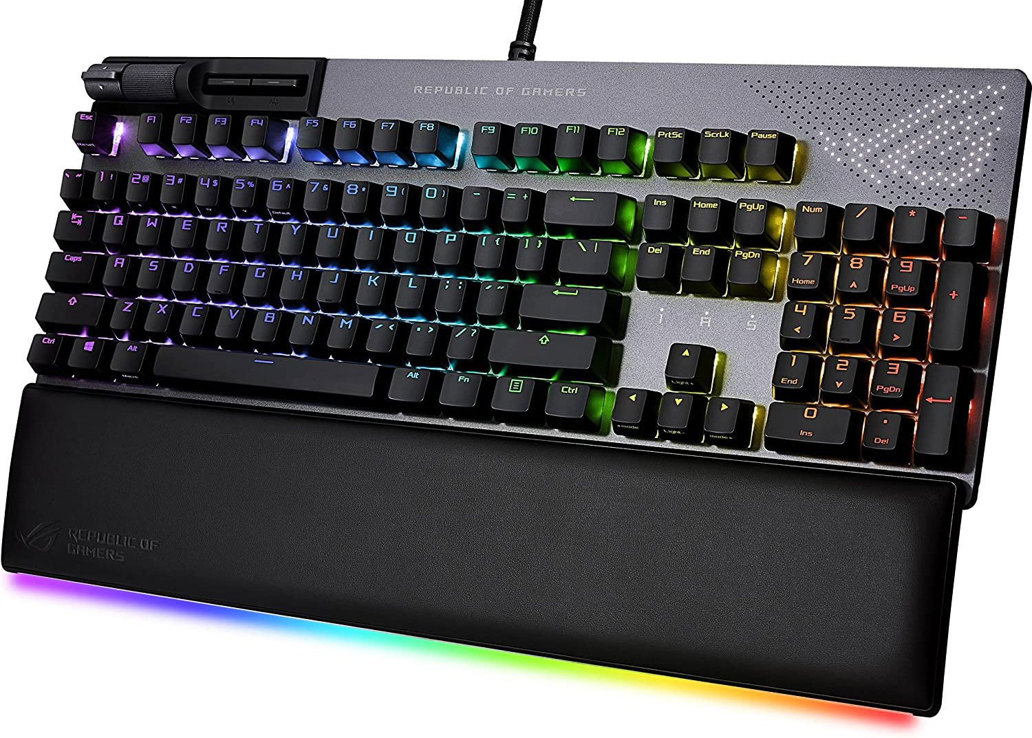 ASUS ROG Strix Flare II Animate 100% RGB Gaming Keyboard - Hot-swappable, ROG NX Red Linear Switches, Customizable LED Display, PBT Keycaps, Acoustic Dampening Foam, Media Controls, Wrist Rest