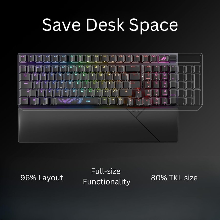 ASUS ROG Strix Scope II 96 Wireless Mechanical Gaming Keyboard – 96% Full-Size, Tri-Mode Connection, Bluetooth Compatible, Hot Swappable Pre-lubed ROG NX Snow Linear Switches, PBT Keycaps, RGB, PC