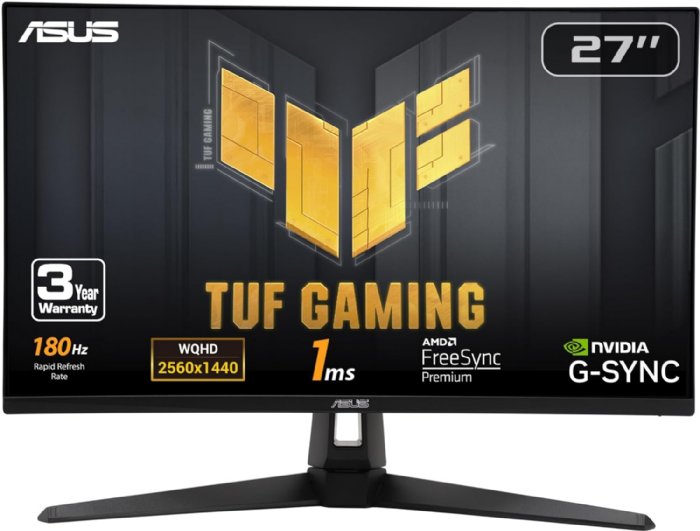 ASUS TUF Gaming 27 1440P HDR Monitor (VG27AQ3A) QHD (2560 x 1440), 180Hz, 1ms, Fast IPS, 130% sRGB, Extreme Low Motion Blur Sync, Speakers, Freesync Premium, G-SYNC Compatible, HDMI, DisplayPort