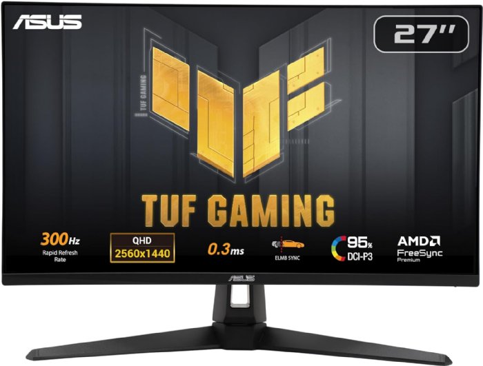 ASUS TUF Gaming 27 1440P Monitor (VG27AQM5A) - QHD (2560x1440), 300Hz, Fast IPS, Extreme Low Motion Blur Sync, 0.3ms, Speaker, 95% DCI-P3, Shadow Boost, DisplayWidget Center, 3 yr warranty