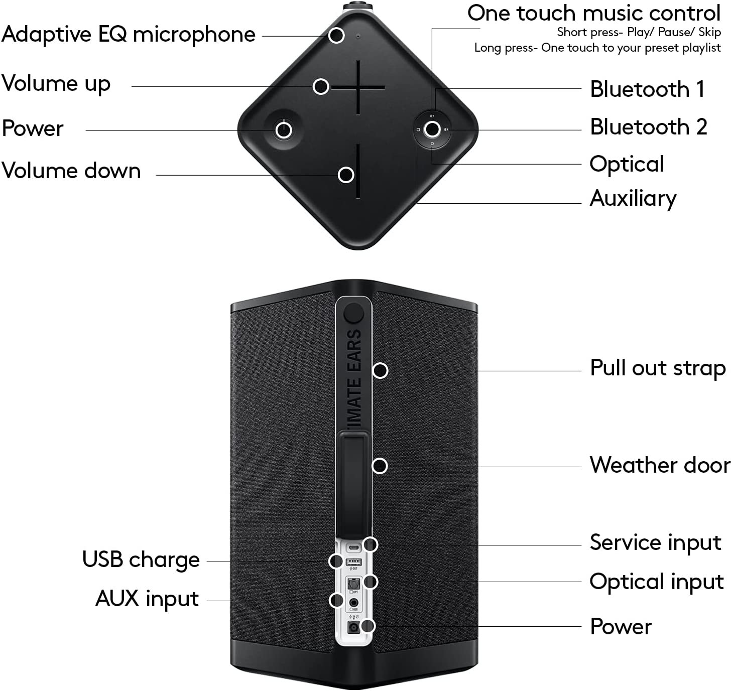 Logitech Ultimate Ears Hyperboom Portable & Home Wireless Bluetooth Speaker, Loud Speaker, Big Bass, Water Resistant IPX4, 150 Ft Range – Black