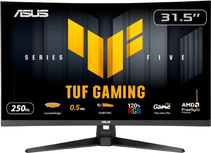 TUF Gaming 31.5in 1080P Curved HDR Monitor (VG32VQM5B) - Full HD, 1500R, 250Hz, 0.5ms, Extreme Low Motion Blur Sync, FreeSync Premium, 120% sRGB, DisplayWidget Center, 3 yr warranty