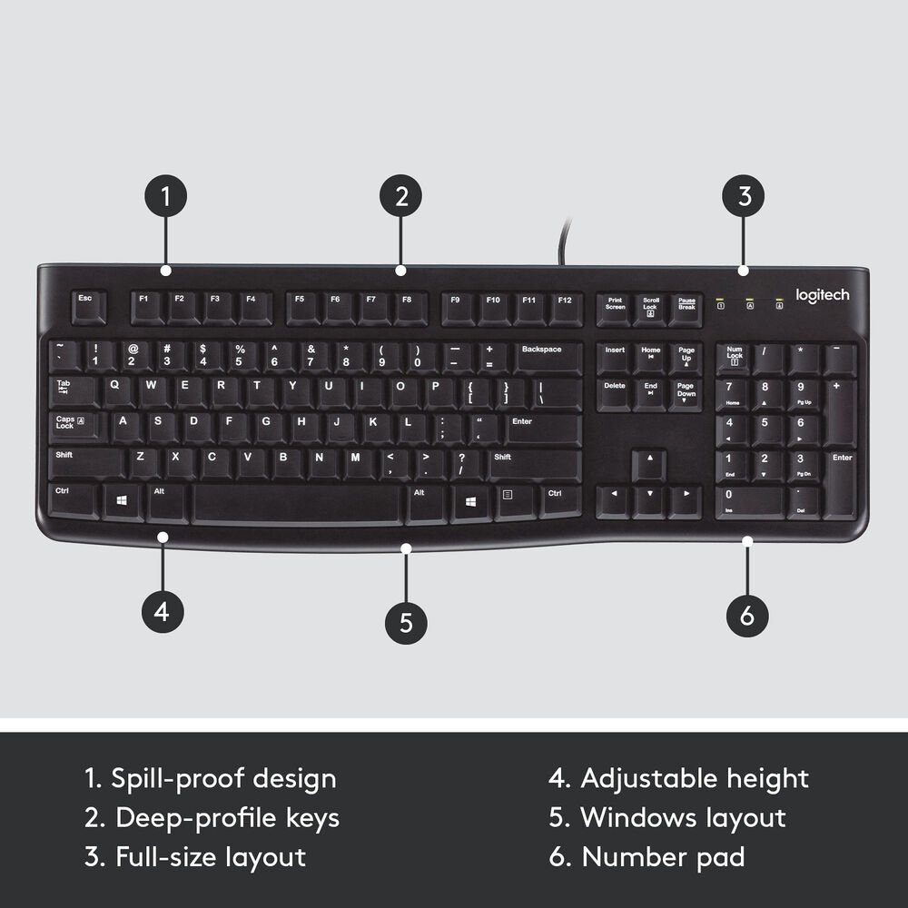 Logitech Keyoard K120 - English Layout -Comfortable, Quiet Typing, Adjustable Tilt Legs, Spill-Resistant Design, Wired USB ...(920-002478)