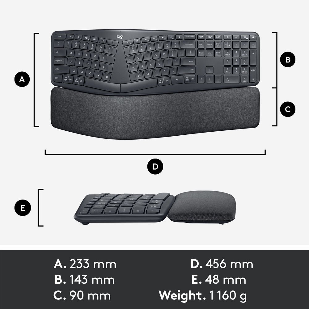 Logitech ERGO K860 Wireless Split Ergonomic Keyboard, Bluetooth 5.0 LE Connection, Molded Convex Curve with Split Key, Full-Size Layout with Integrated Numpad...(920-009166)