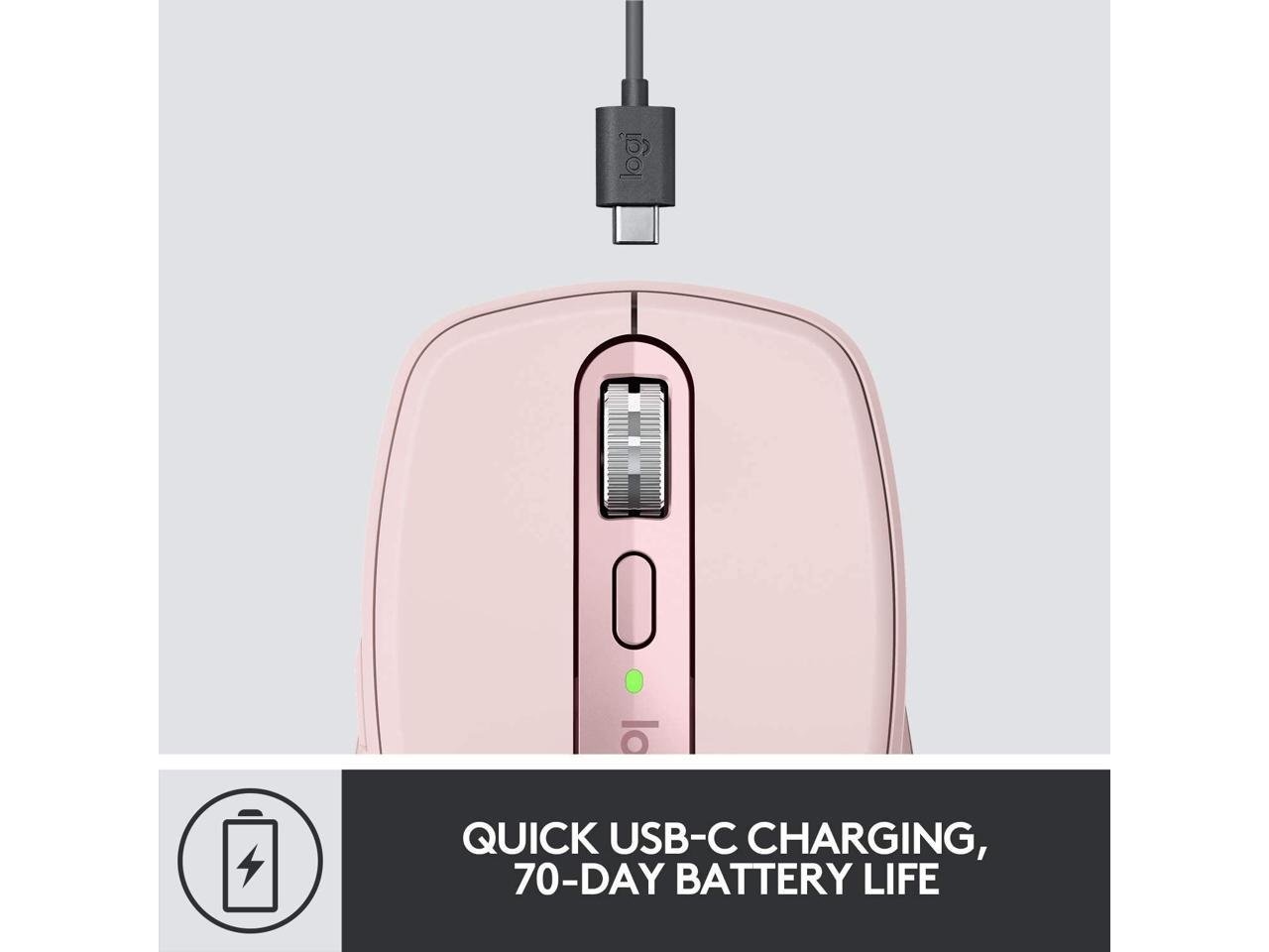 Logitech MX Anywhere 3 Compact Performance Mouse, Wireless, Comfort, Fast Scrolling, Any Surface, Portable, 4000DPI, Customizable Buttons, USB-C, Bluetooth - Rose (910-005986)