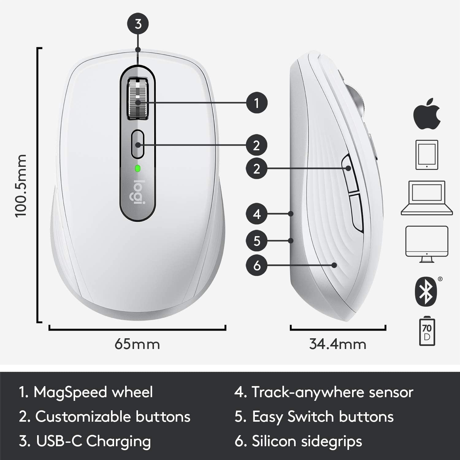 Logitech MX Anywhere 3 Compact Performance Mouse, Wireless, Comfort, Fast Scrolling, Any Surface, Portable, 4000DPI, Customizable Buttons, USB-C, Bluetooth ...