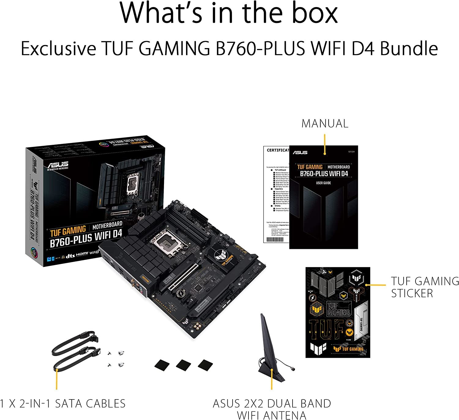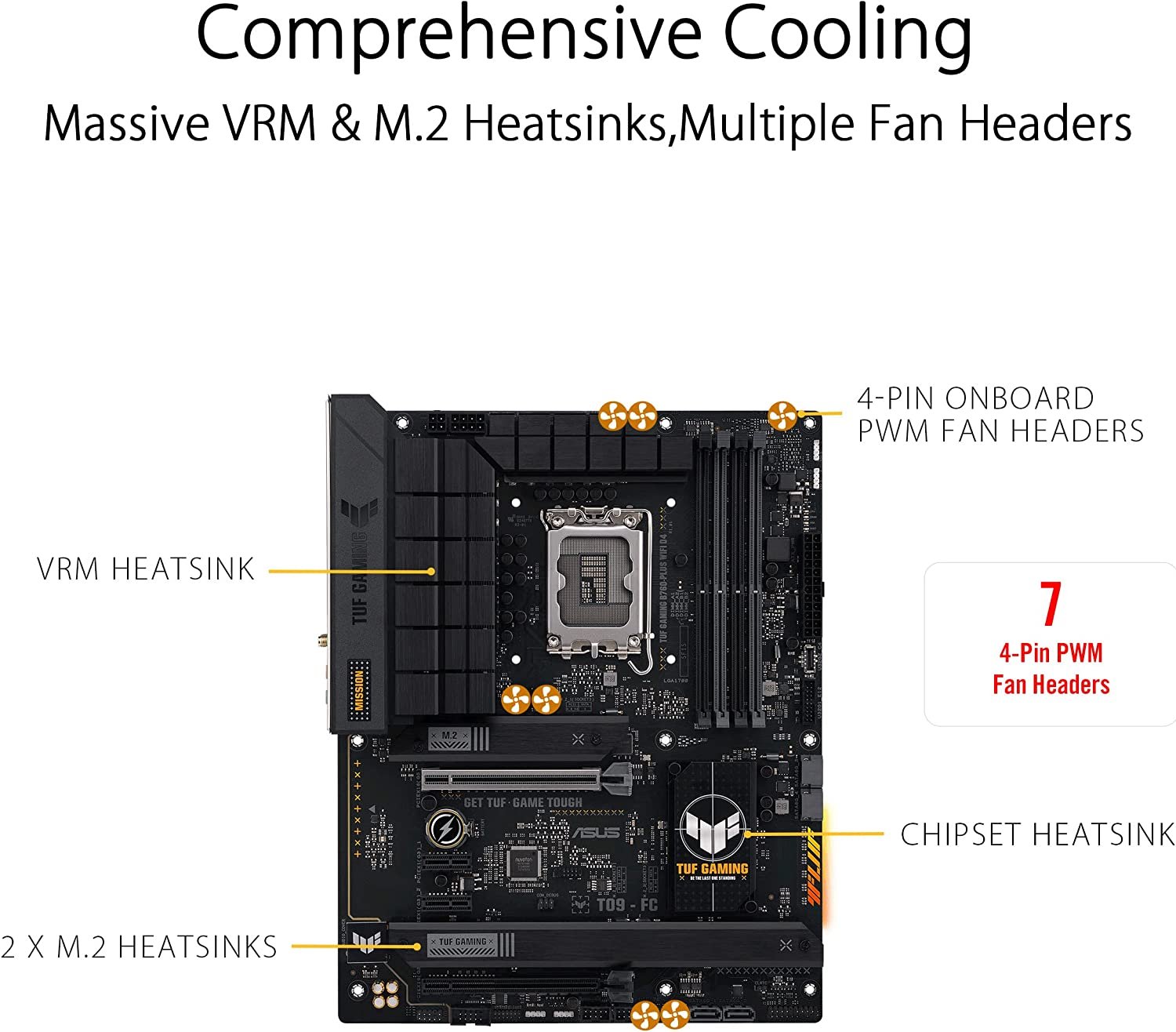 ASUS TUF GAMING B760-PLUS WIFI Intel B760 (13th and 12th Gen) LGA 1700 ATX motherboard with PCIe 5.0, three PCIe 4.0 M.2 slots, DDR4, Realtek 2.5Gb Ethernet, DisplayPort, HDMI, SATA 6 Gbps, USB 3.2 Gen 2x2 Type-C