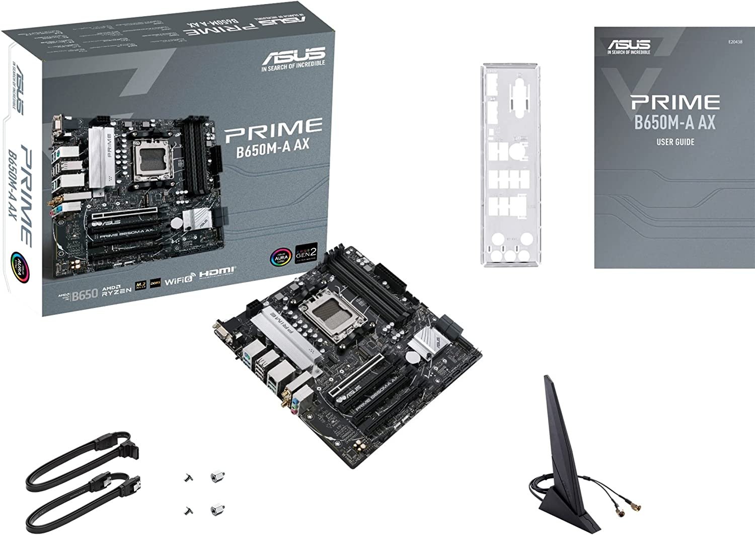 ASUS Prime B650M-A AX AMD B650 (Ryzen 7000) Micro-ATX motherboard (DDR5 PCIE 5.0 M.2 support 2.5Gb Ethernet Wi-Fi 6 DisplayPort HDMI USB 3.2 G2 ports front USB 3.2 Gen 1...