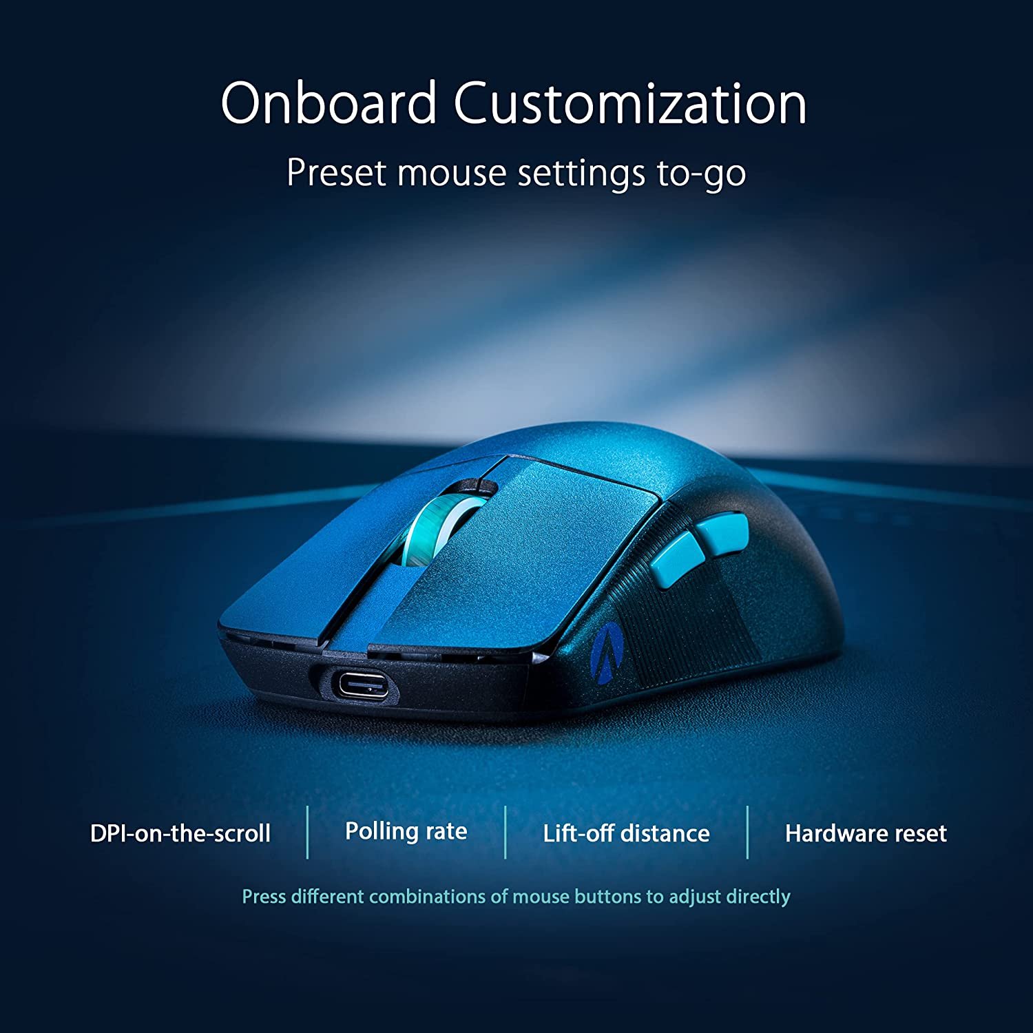 • Onboard control: Allows frequently used mouse settings to be adjusted directly by pressing different combinations of mouse buttons
