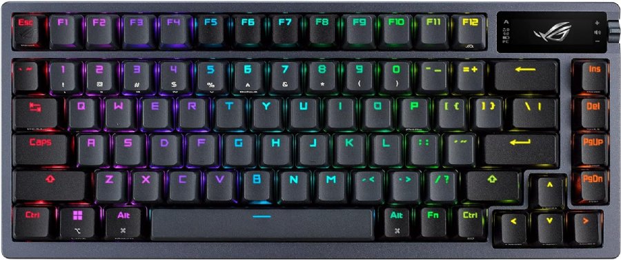 ASUS ROG Azoth 75 Wireless Custom Gaming Keyboard, OLED Display, Gasket-Mount, Three-Layer Dampening, Hot-Swappable Pre-lubed ROG NX Storm Switches & Keyboard Stabilizers, PBT Keycaps, RGB